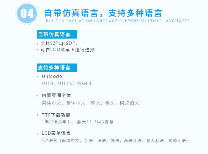 新一代打印引擎含有雙色LCD和LED顯示器,方便作業者即便遠離打印設備也能輕松獲知打印狀態。只通過LCD屏控制就可進行獨立打印操作。無需軟件工具,客戶可通過SD卡/U盤,下載/上傳字體、打印設置;可通過網頁瀏覽器遠程設置打印機。