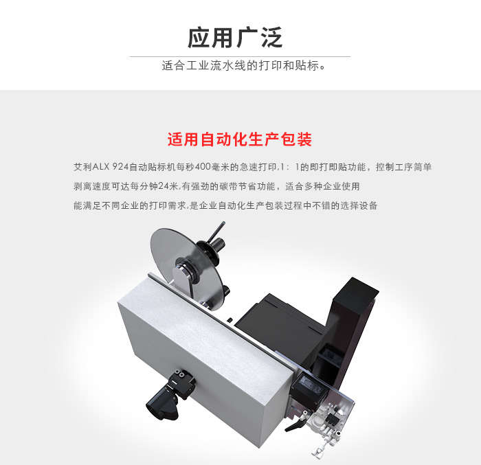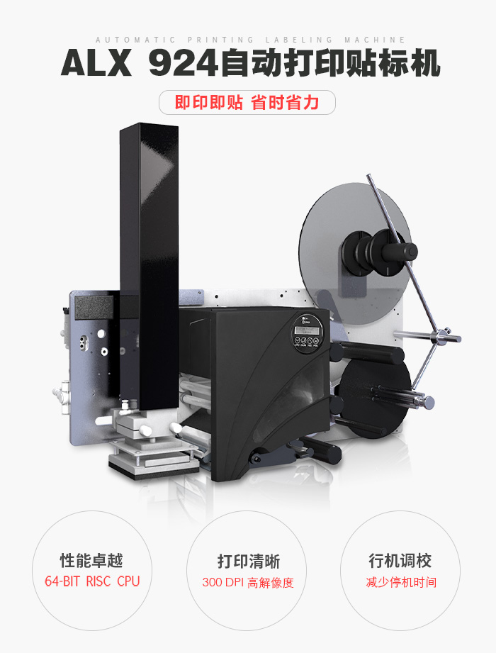 ALX 92x 打印貼標機產品系列產品編號、條碼、生產日期及產品描述;由于市場對產品資料的要求不斷提高,因此更需要有一個快速、可靠的打印貼標系統來應付。高科技的打印技術ALX 92x 的表現在市場中無人能及!